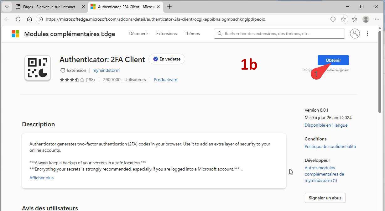 Cette procédure sera à effectuer une fois pour toutes pour paramétrer la double authentification.