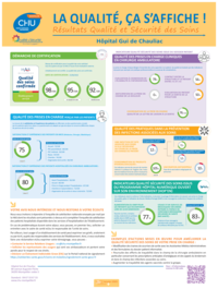 Garantir la qualité et la sécurité des soins est un enjeu primordial du CHU de Montpellier. Cela constitue un objectif commun à toutes les fonctions de l’hôpital : médicales et soignantes, techniques, logistiques et managériales. Les Indicateurs de Qualité et de Sécurité des Soins (IQSS) permettent d'évaluer de manière fiable la qualité et la sécurité des soins, et leurs variations dans le temps, par la mesure d'un état de santé, une pratique, une organisation ou la survenue d'un événement. Ils sont utilisés par les professionnels dans les établissements de santé comme outils d'amélioration de la qualité et de la sécurité des soins délivrés aux patients, de comparaison entre établissements et d'aide à la décision. Cliquez sur l'image ci-contre pour consulter les IQSS de l'hôpital Gui de Chauliac.