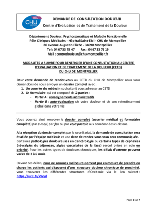 Secrétariat Centre d'Evaluation et de Traitement de la Douleur 04 67 33 78 47