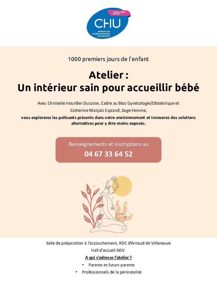Avec Christelle Hourdier Ducasse, Cadre au Bloc Gynécologie/Obstétrique et Catherine Marçais Espiand, Sage-Femme, vous explorerez les polluants présents dans votre environnement et trouverez des solutions alternatives pour y être moins exposés.