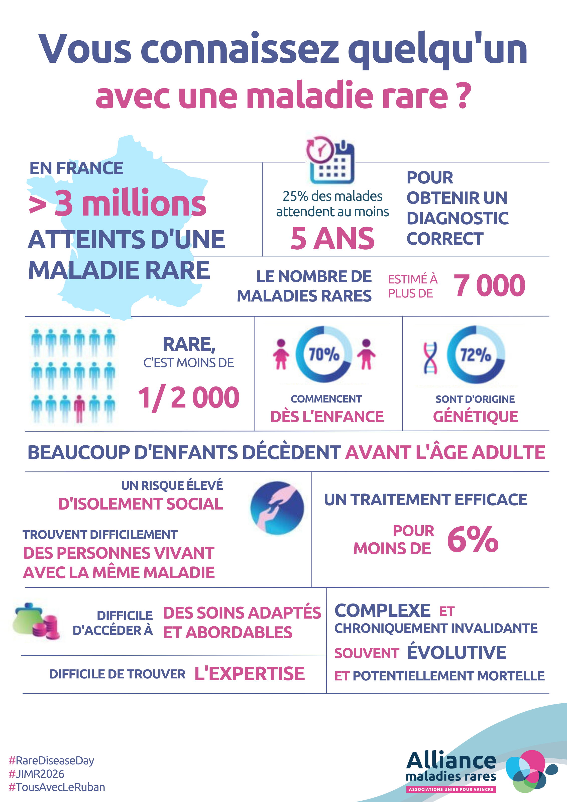 On recense aujourd’hui plus de 7 000 maladies rares. Elles sont le plus souvent complexes, chroniques et évolutives, et leur diagnostic peut parfois prendre plusieurs années. Cette réalité rend indispensable une prise en charge spécialisée, coordonnée et centrée sur les besoins des patients et de leurs proches.